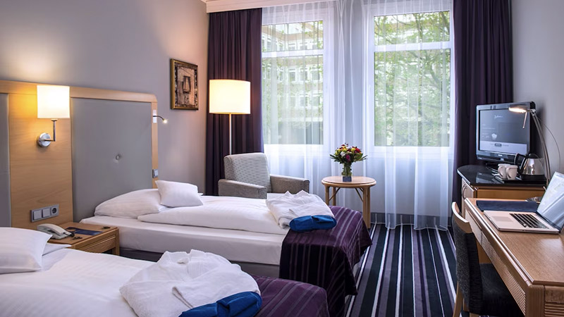 Fina Radisson Blu Hotel ligger i Bremens gamla stadskärna och erbjuder bekvämt gångavstånd till många av stadens främsta sevärdheter och attraktioner, inklusive det historiska torget Marktplatz, Bremen Roland-statyn och Bremens domkyrka (Bremer Dom). Dessutom ligger hotellet nära floden Weser och den charmiga Schnoor-kvarteret, vilket gör det till en utmärkt bas för att utforska Bremens sevärdheter och uppleva stadens atmosfär.