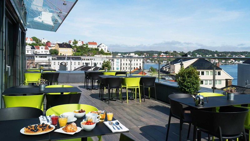 Thon Hotel Arendal är ett modernt och inbjudande hotell beläget i hjärtat av den pittoreska kuststaden Arendal. Med sitt centrala läge, bara ett stenkast från den livliga hamnen Pollen, är hotellet en perfekt utgångspunkt för att utforska stadens charmiga gator, restauranger och butiker. Hotellet erbjuder smakfullt inredda rum med allt du behöver för en bekväm vistelse, inklusive bekväma sängar, moderna bekvämligheter och en avslappnande atmosfär. Vissa rum har även utsikt över havet, vilket gör din vistelse extra speciell. Varje morgon kan gästerna njuta av en generös frukostbuffé fylld med färska råvaror och lokala specialiteter – en perfekt start på dagen. För den som önskar en avslappnad middag erbjuder hotellets restaurang välsmakande rätter med fokus på norska och internationella smaker. Oavsett om du är i Arendal för att koppla av vid havet, utforska stadens kultur eller delta i affärsaktiviteter, erbjuder Thon Hotel Arendal en trivsam vistelse där kvalitet och service står i fokus.