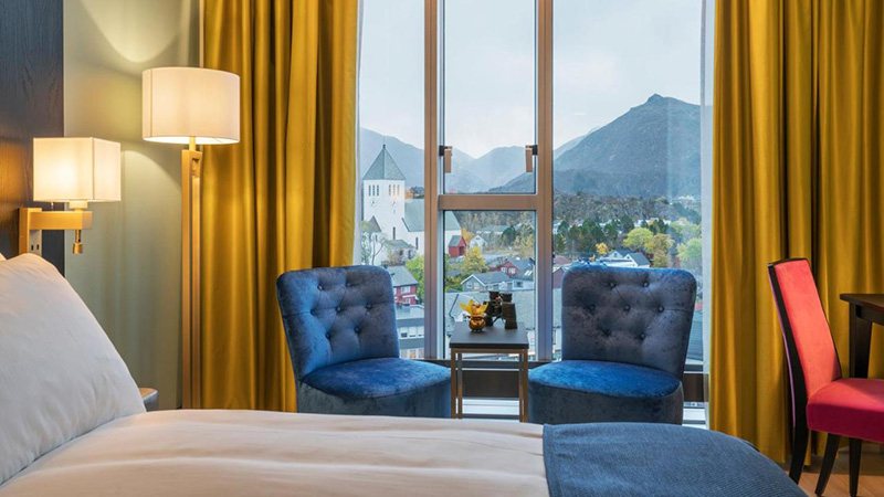 Thon Hotel Svolvær är ett charmigt och modernt hotell beläget i hjärtat av Lofotens magiska natur i Norge. Med en fantastisk placering precis vid vattnet kan gästerna njuta av hisnande vyer över fjordar och fjäll direkt från hotellet. Rummen är stilfullt inredda med en varm och välkomnande atmosfär som reflekterar den nordiska naturen utanför. Här kan du börja dagen med en utsökt frukostbuffé och avsluta kvällen med en middag på hotellets restaurang, som erbjuder smaker inspirerade av lokala råvaror. Thon Hotel Svolvær är det perfekta valet för en avkopplande och minnesvärd vistelse i natursköna Lofoten!